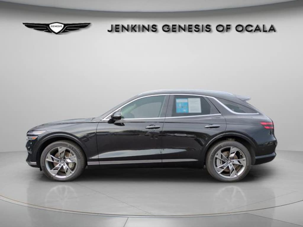 This vehicle comes equipped with Option Group 01, Genesis Certified, 10.65 Axle Ratio, 4-Wheel Disc Brakes, 8 Speakers, ABS brakes, Adaptive suspension, Air Conditioning, Alloy wheels, AM/FM radio: SiriusXM, Android Auto & Apple CarPlay, Anti-whiplash front head restraints, Auto High-beam Headlights, Auto-dimming door mirrors, Auto-dimming Rear-View mirror, Automatic temperature control, Brake assist, Bumpers: body-color, Delay-off headlights, Driver door bin, Driver vanity mirror, Dual front impact airbags, Dual front side impact airbags, Electronic Stability Control, Emergency communication system: Genesis Connected Services, Four wheel independent suspension, Front anti-roll bar, Front Bucket Seats, Front Center Armrest, Front dual zone A/C, Front reading lights, Fully automatic headlights, Garage door transmitter: HomeLink, Heated & Ventilated Front Bucket Seats, Heated door mirrors, Heated front seats, Illuminated entry, Knee airbag, Leather Seating Surfaces, Low tire pressure warning, Memory seat, Navigation System, Occupant sensing airbag, Outside temperature display, Overhead airbag, Overhead console, Panic alarm, Passenger door bin, Passenger vanity mirror, Power door mirrors, Power driver seat, Power Liftgate, Power moonroof, Power passenger seat, Power steering, Power windows, Premium First Aid Kit, Radio: AM/FM/HD SiriusXM, Rain sensing wipers, Rear air conditioning, Rear anti-roll bar, Rear reading lights, Rear seat center armrest, Rear window defroster, Rear window wiper, Remote keyless entry, Reversible Cargo Tray, Security system, Speed control, Speed-sensing steering, Speed-Sensitive Wipers, Split folding rear seat, Spoiler, Steering wheel memory, Steering wheel mounted audio controls, Telescoping steering wheel, Traction control, Trip computer, Turn signal indicator mirrors, Variably intermittent wipers, Ventilated front seats, and Wheels: 20" x 8.5J Dark Sputtering .