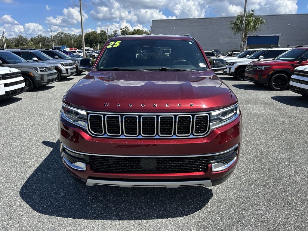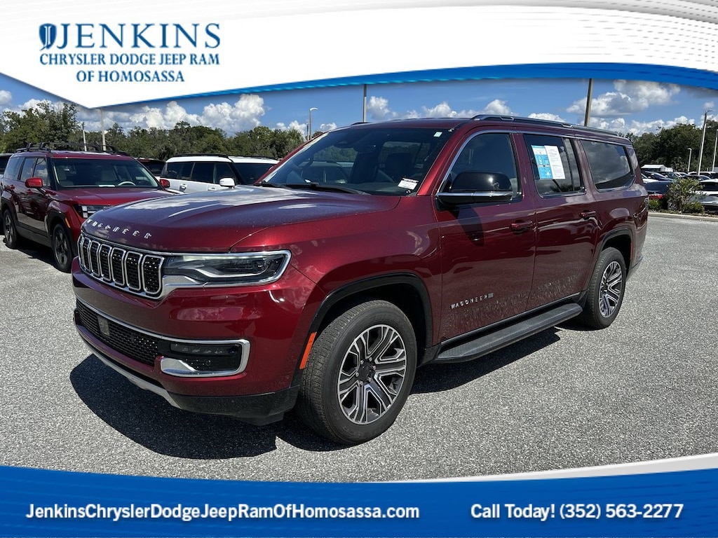 The price does not include tax, tag, license, an electronic filing fee of $449.00**, a private tag agency fee of $199.00**, and a predelivery service charge of $1199.00** **This charge represents costs and profit to the dealer for items such as inspecting, cleaning, and adjusting vehicles, as well as preparing documents related to the sale. * EPA-estimate metric: these are contingent on ideal conditions within a lab. Real-world situations such as carrying passengers or cargo, using climate control, driving style, and ambient temperatures can affect actual metrics. 16/23 City/Highway MPG NAVIGATION SYSTEM, ALLOY WHEELS, BACKUP CAMERA, BLUETOOTH, CLIMATE PACKAGE, DVD ENTERTAINMENT, HEAT PACKAGE, LEATHER SEATS, MEMORY PACKAGE, REMOTE START, TOW PACKAGE, TECHNOLOGY PACKAGE. CARFAX One-Owner. Velvet Red Pearlcoat 2024 Jeep Wagoneer L Series II 4WD 8-Speed Automatic 3.0L I6